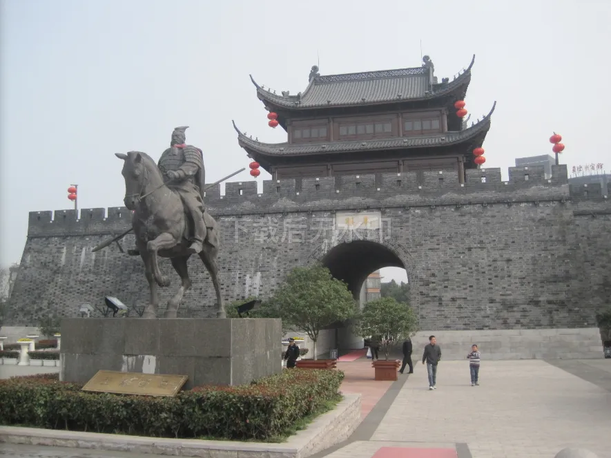 湖州项王公园建于原湖州城奉胜门(系重建)附近,门前有项羽一身甲胄、骑马挎枪的雕像(图9)。相传项羽率八千子弟兵西出击秦,荡平天下,即从此地出发。